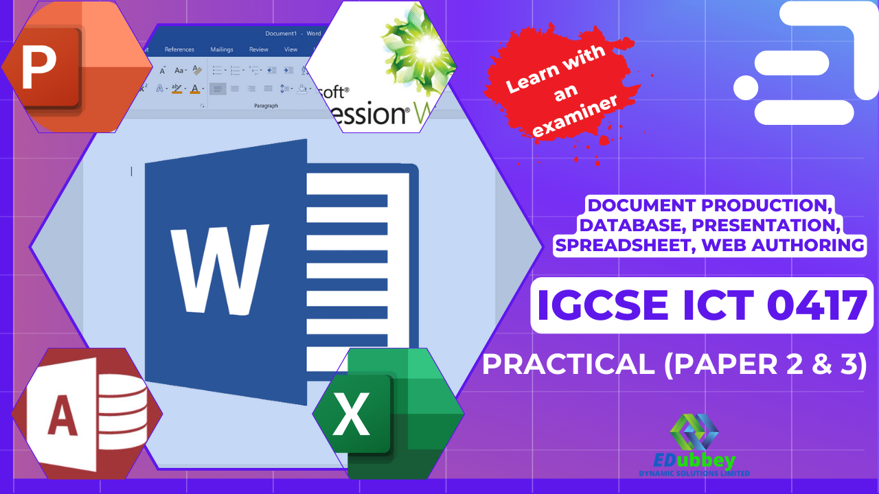 This course contains a complete lesson of the new syllabus of ICT 0417 Paper 2 & 3 (practical)....